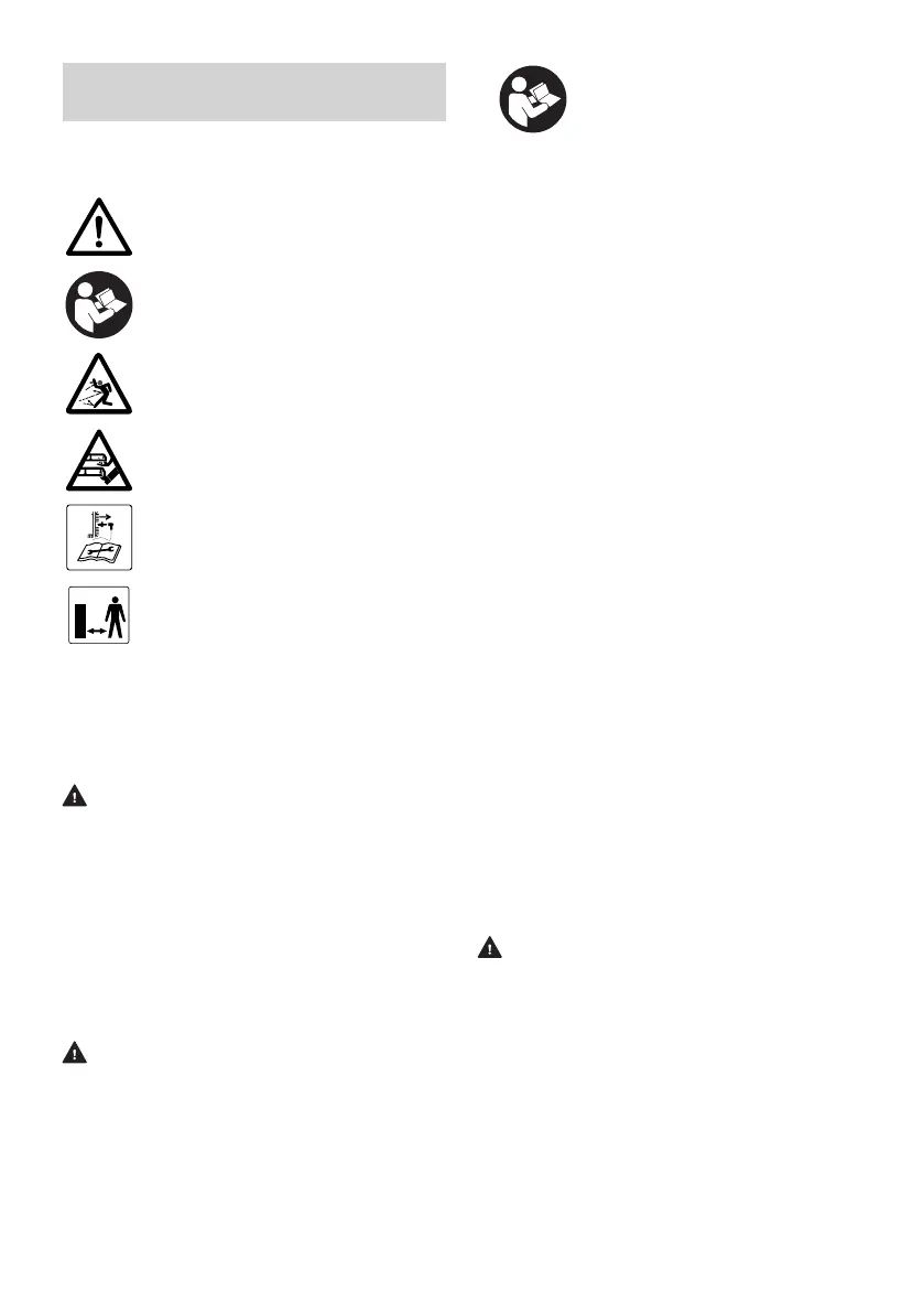 Znaczenie symboli ostrzegawczych na kosiarce: