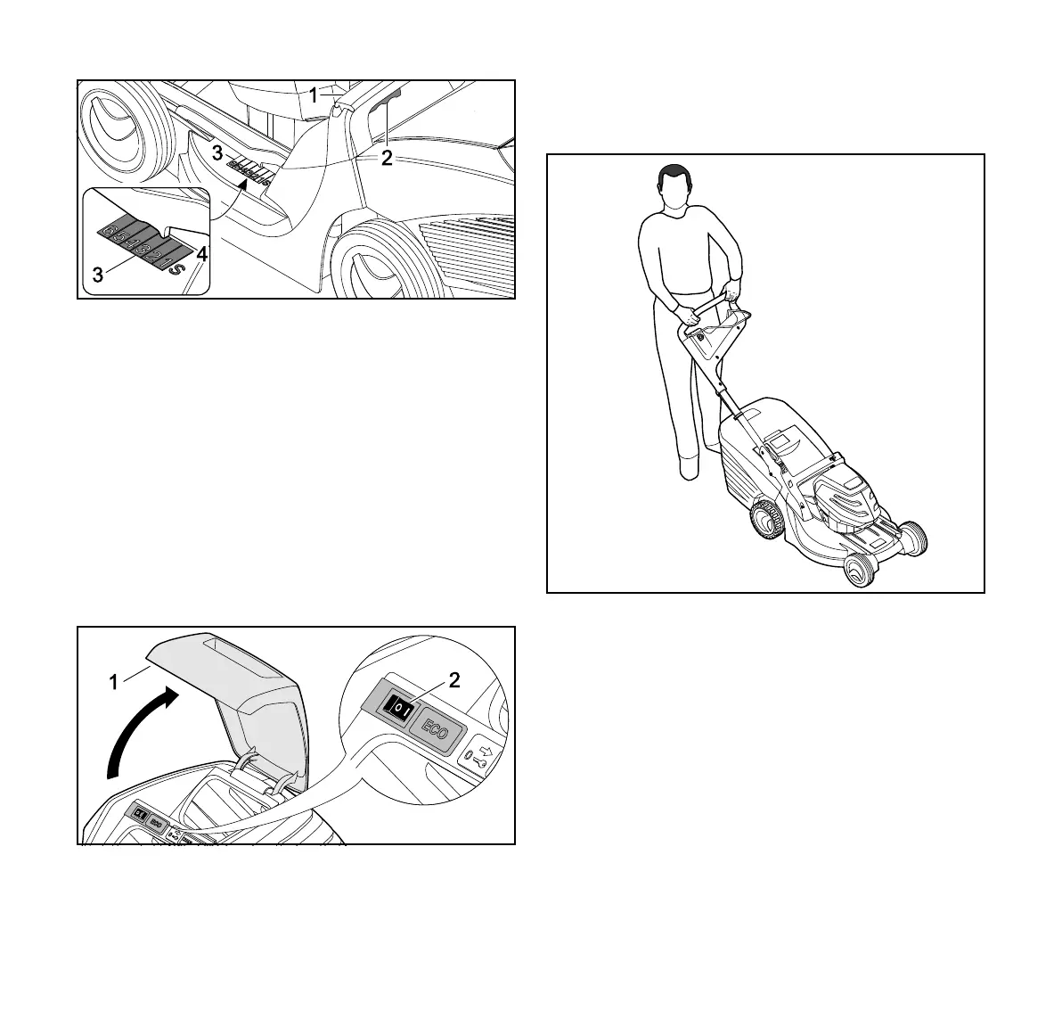 ► Stil plæneklipperen i den ønskede position ved at løfte og