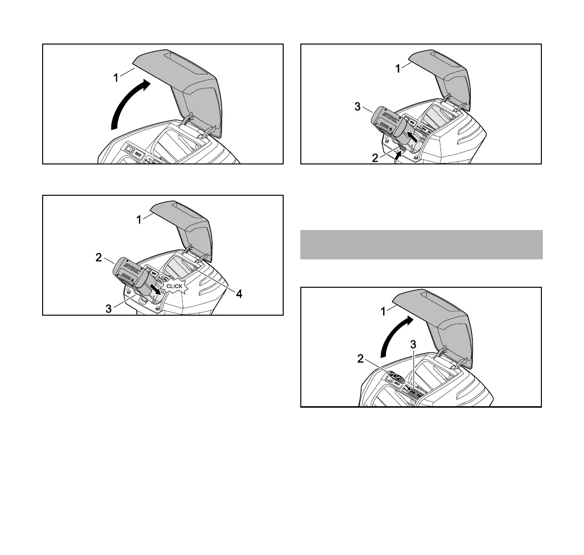 Abra a tampa (1) até ao encosto e mantenha-a nessa