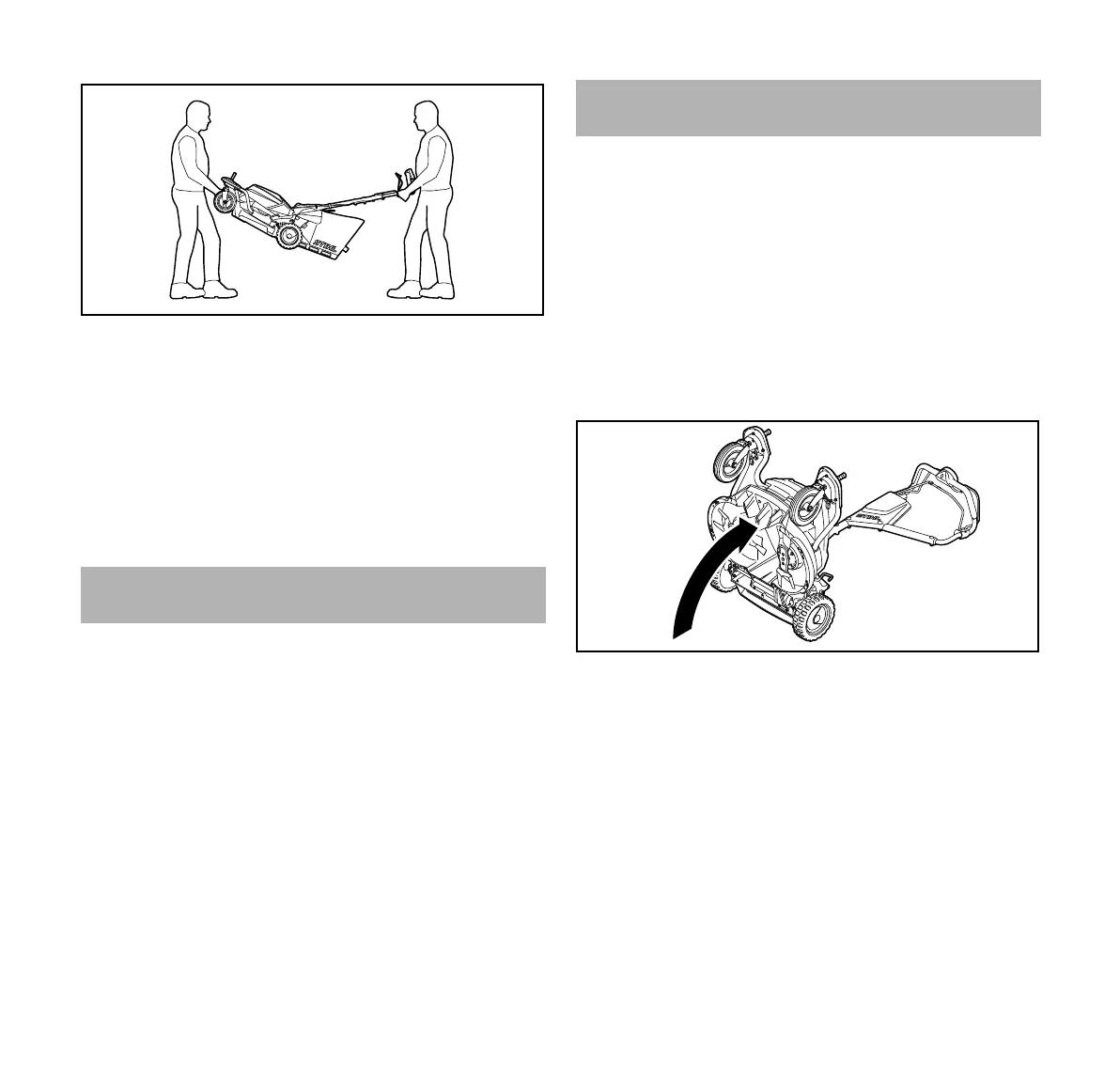 ► Levantar y transportar el cortacésped entre dos personas.