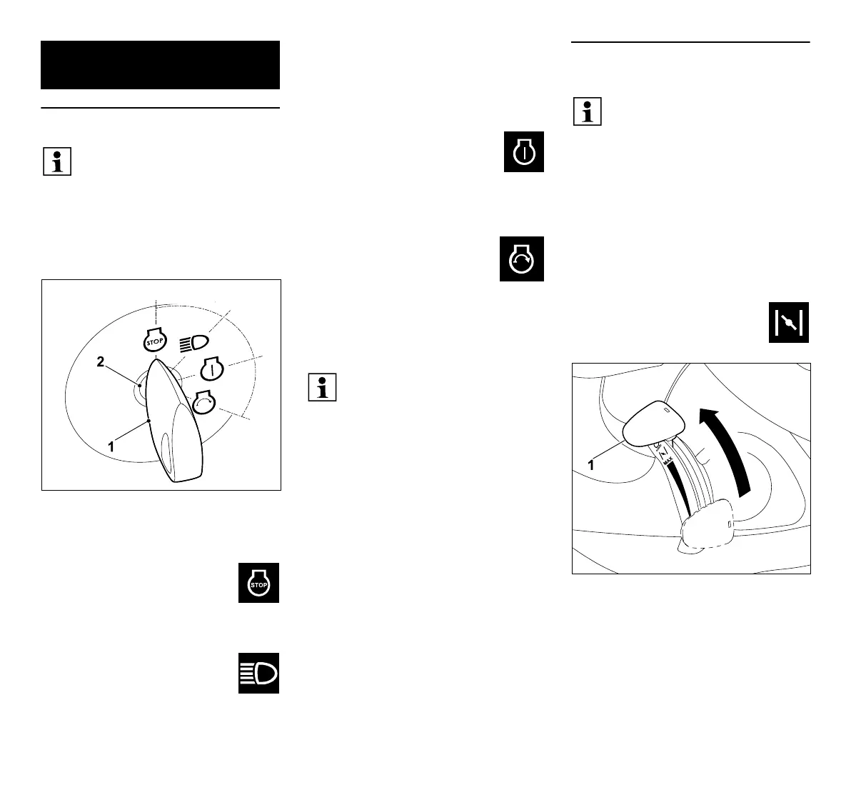 Insert ignition key (1) in ignition lock (2).