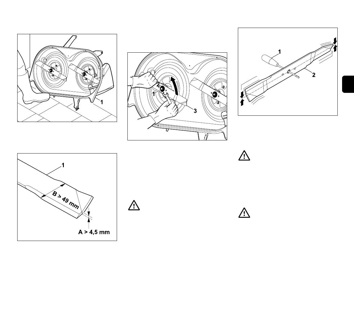 B = leikkuuterän leveys (> 49 mm)