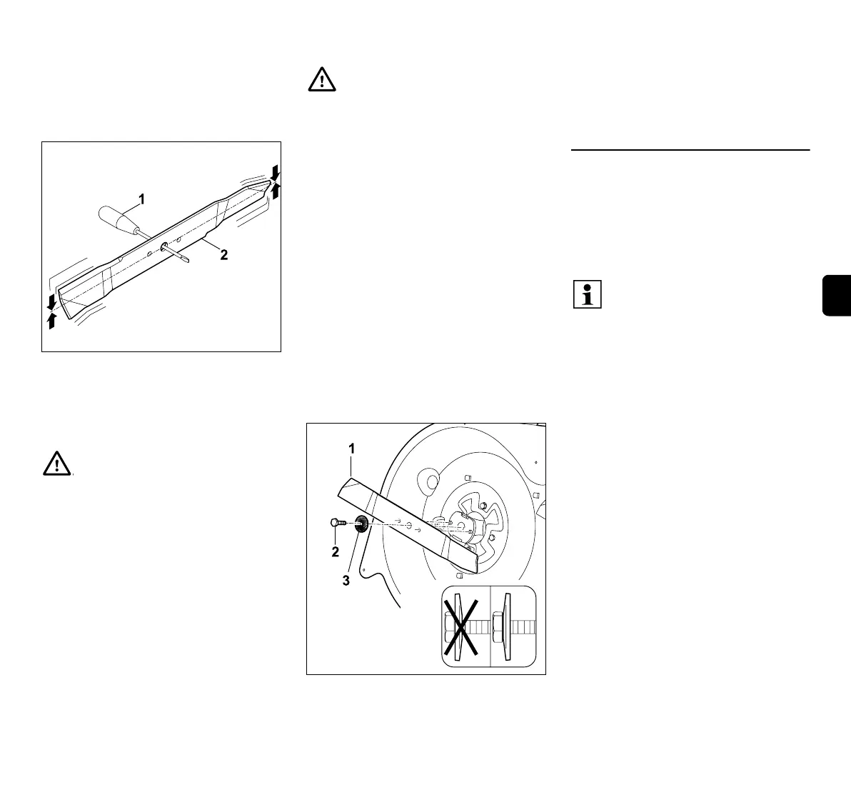 Jeżeli nóż kosiarki (2) jest prawidłowo