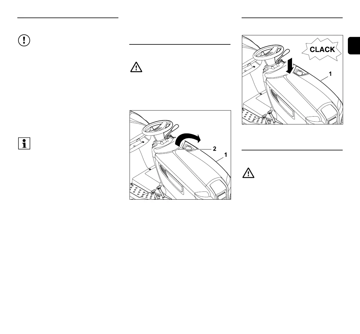 Slå opp motordekselet (1) til det stopper