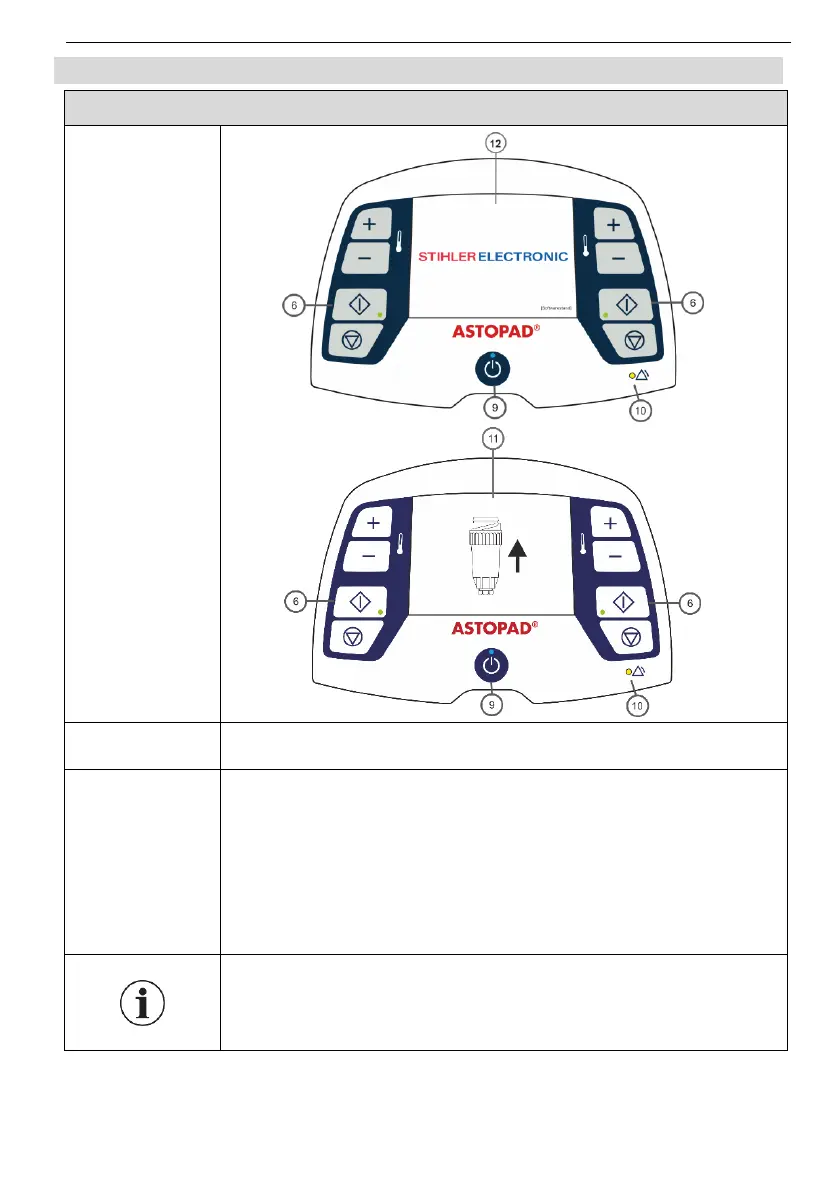 The LEDs (6), (10) flash once and the acoustic alarm signal