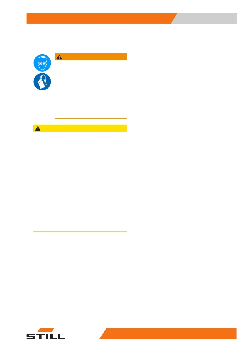 – Rinse away spilt battery acid immedi-