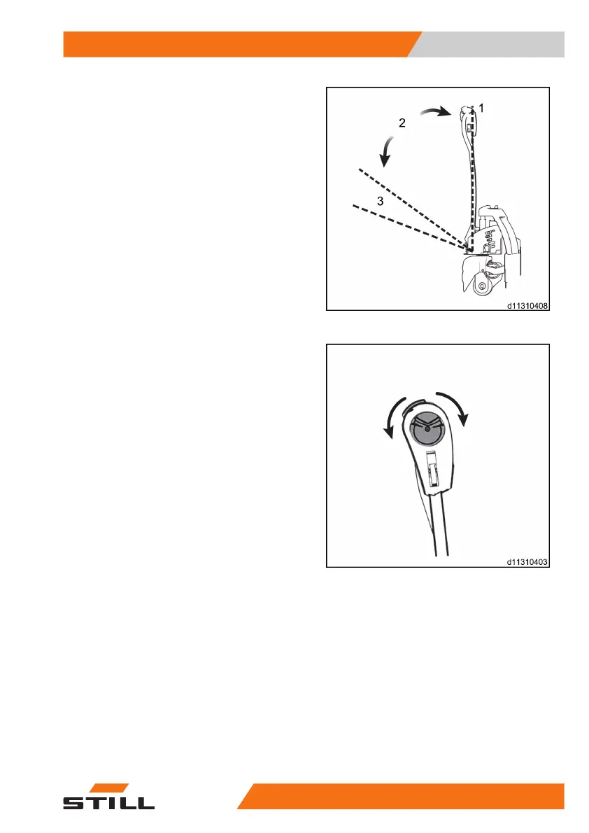 The mechanical brake engages when the tiller