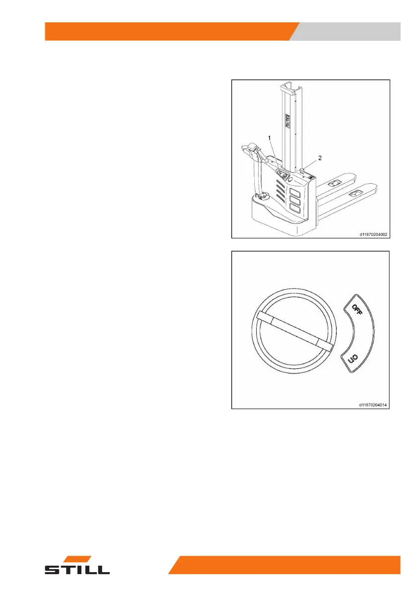Pull the emergency off switch (2) to the