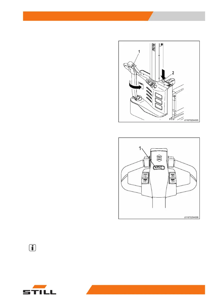 – Press the horn button (1) located on the till-