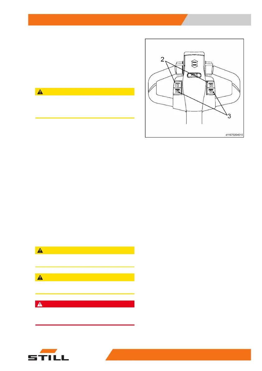 – Press the lift button(2) until the goods reach