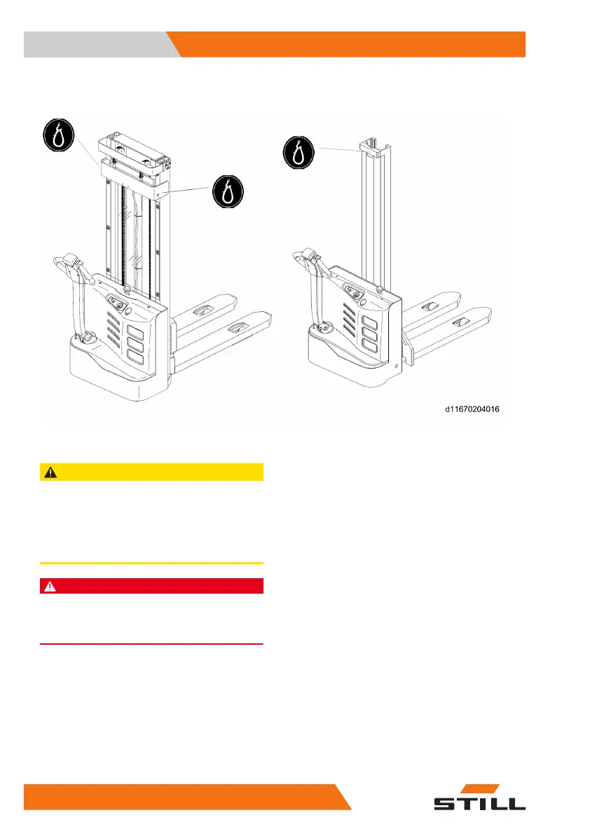 Only use slings (1) and a hoist of sufficient capaci-