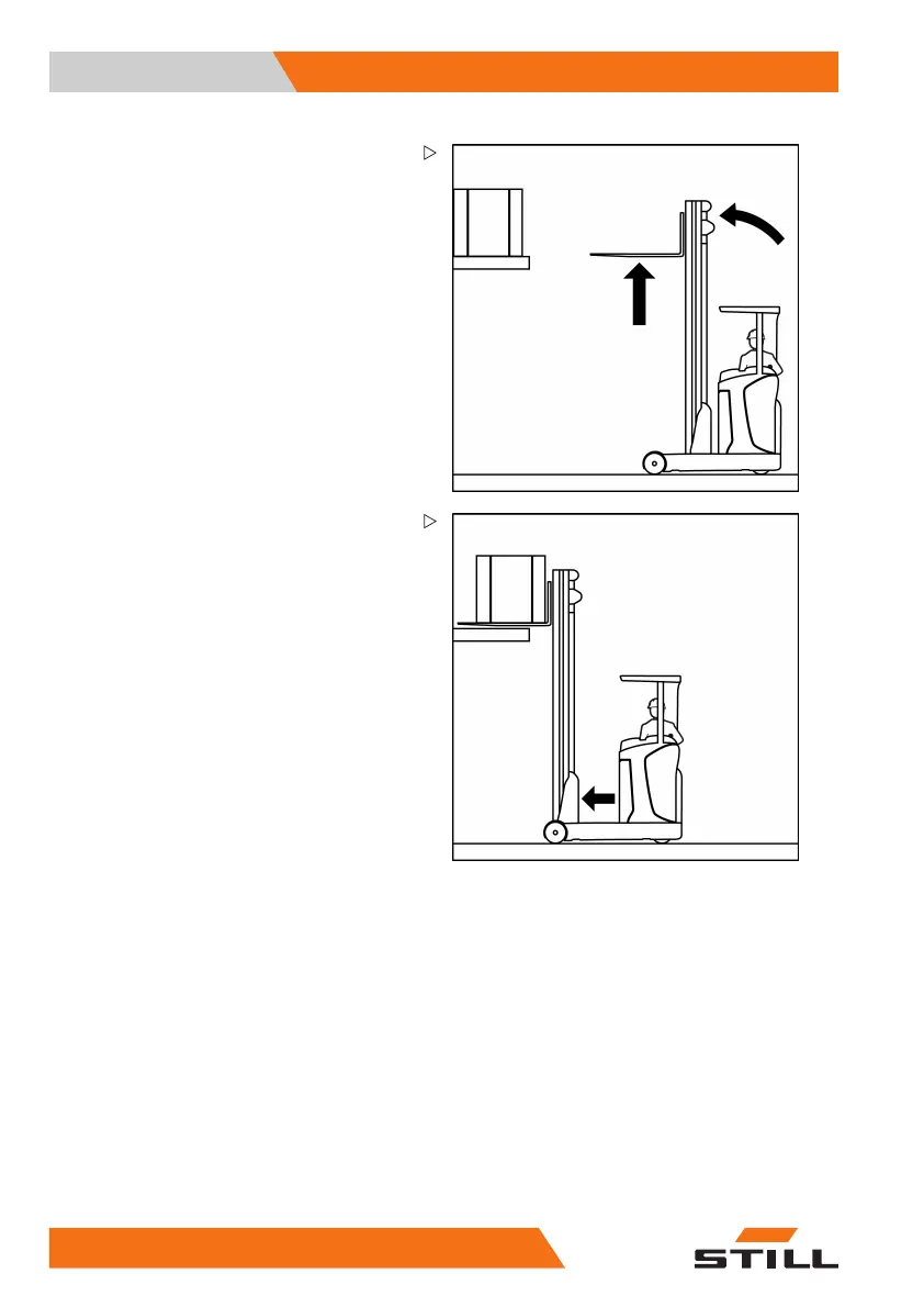 – Tilt the fork tips or lift mast to the drive side
