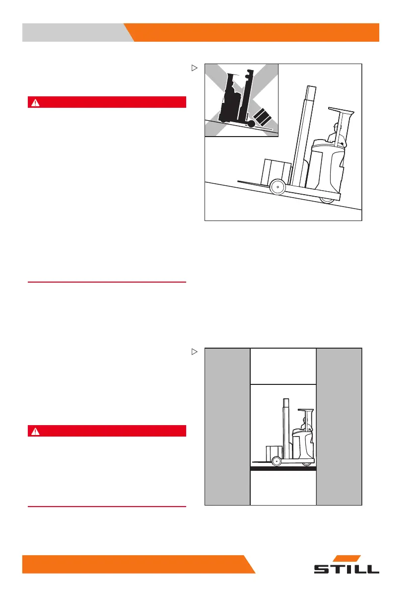 Theforklifttruckmustnotbeparkedonaslope.