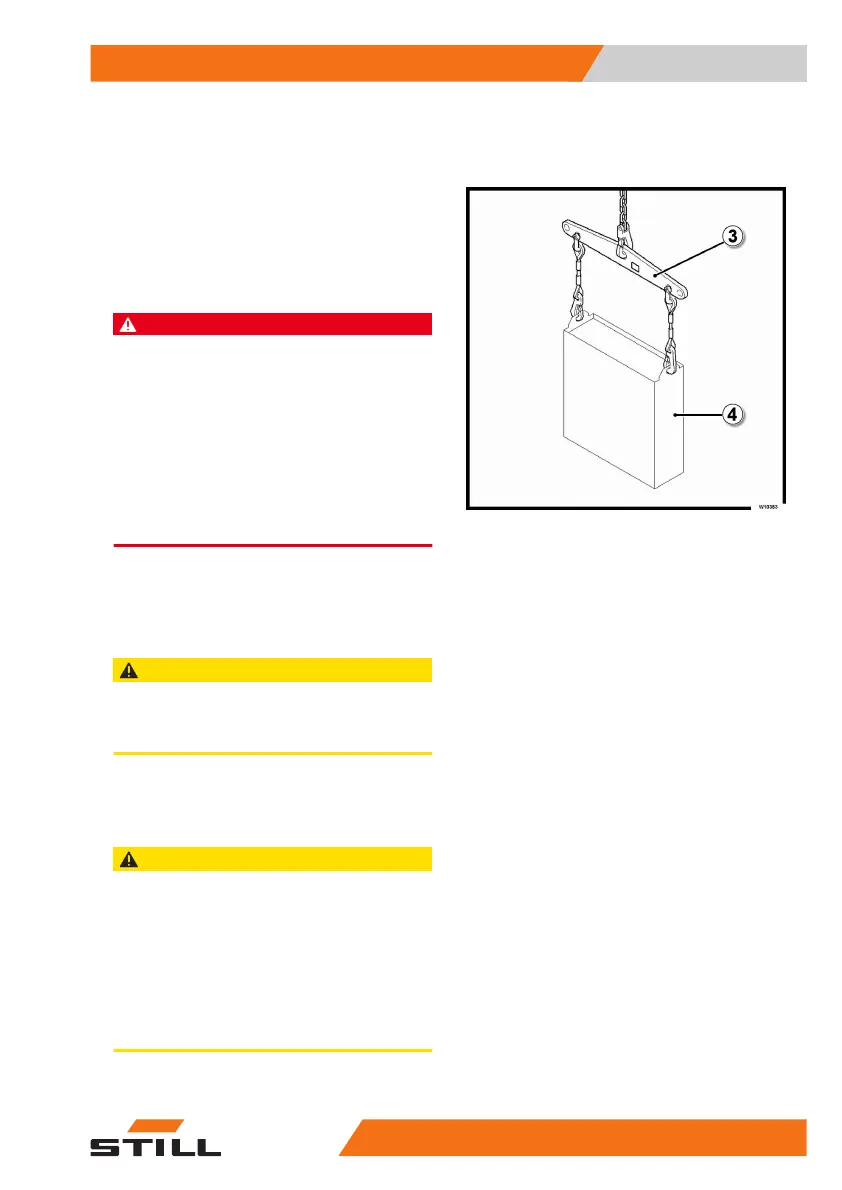 weight of the battery. The rope slings must be