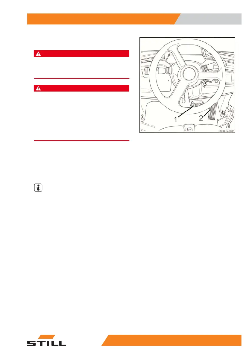 – Always use the foot brake (1) for emergency brak-