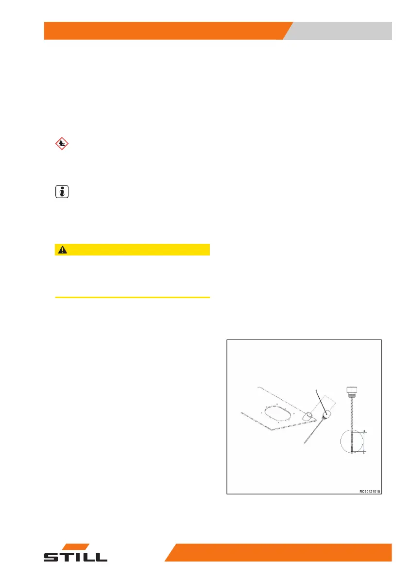 – Use the dipstick to check the oil level. The