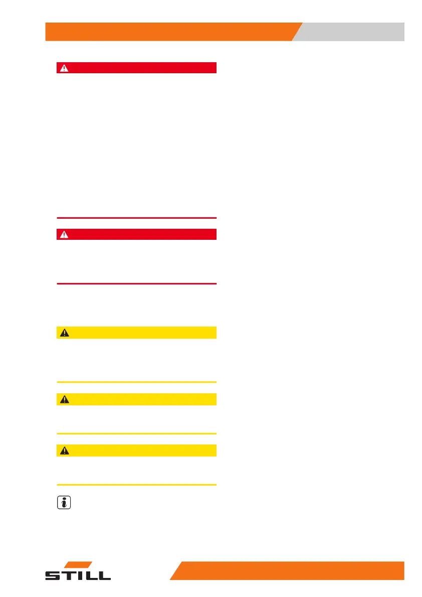 Always tilt the mast backwards and lower the fork