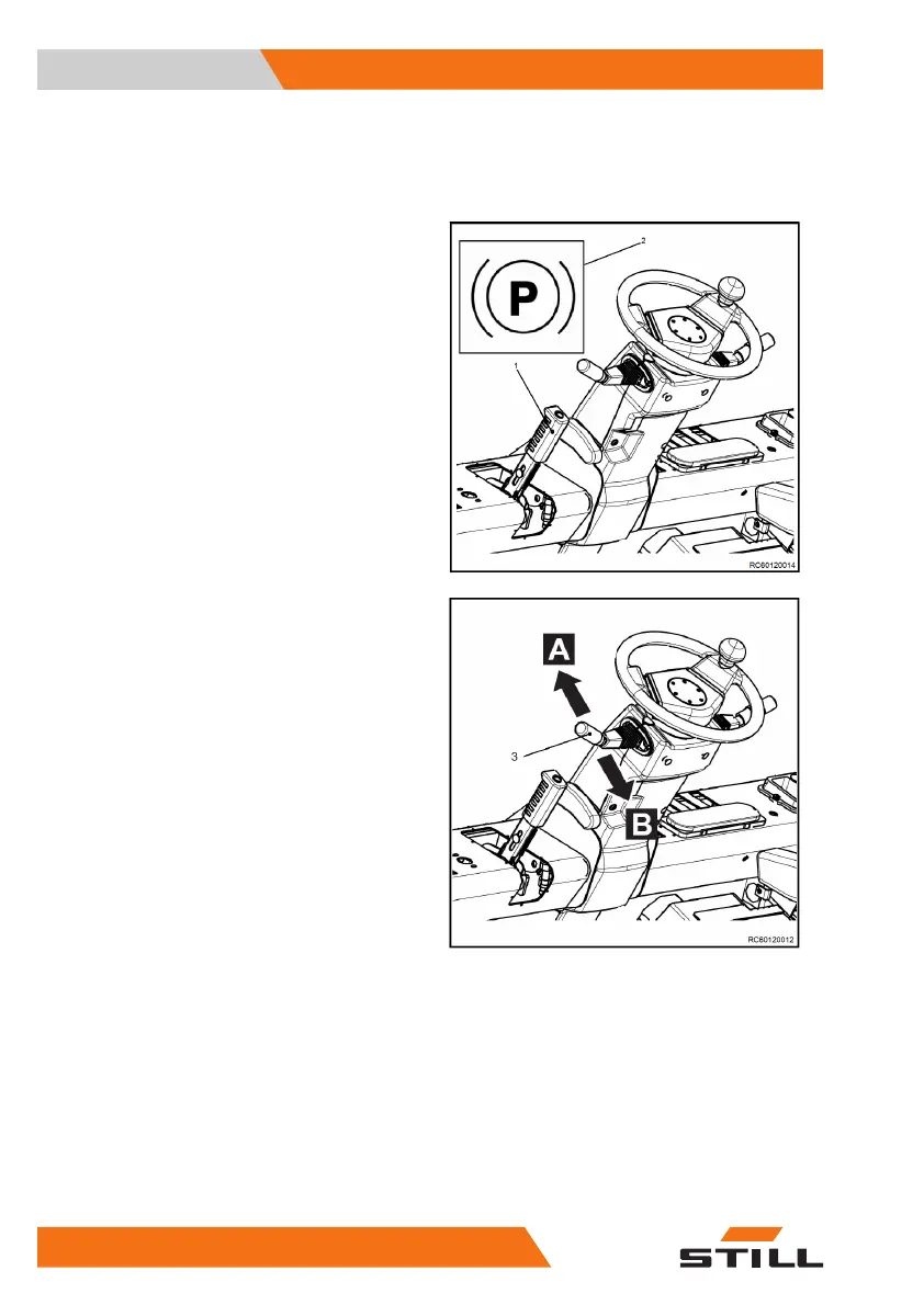 – Release the parking brake (1) , and the cor-