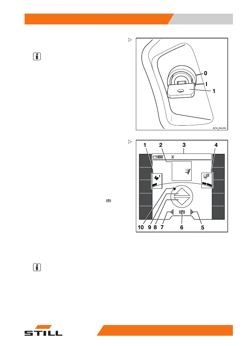– Insert the switch key (1) into the key switch