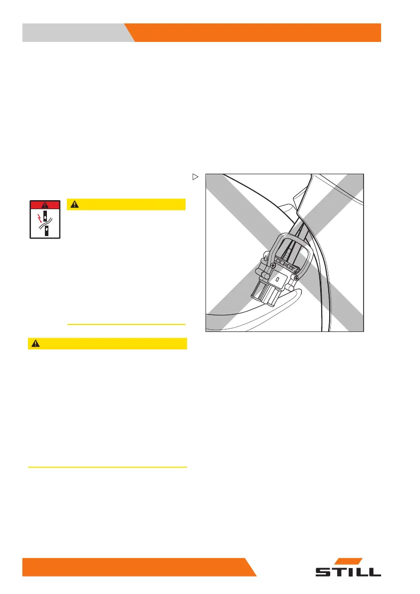 – Switch off the truck or the battery charger before