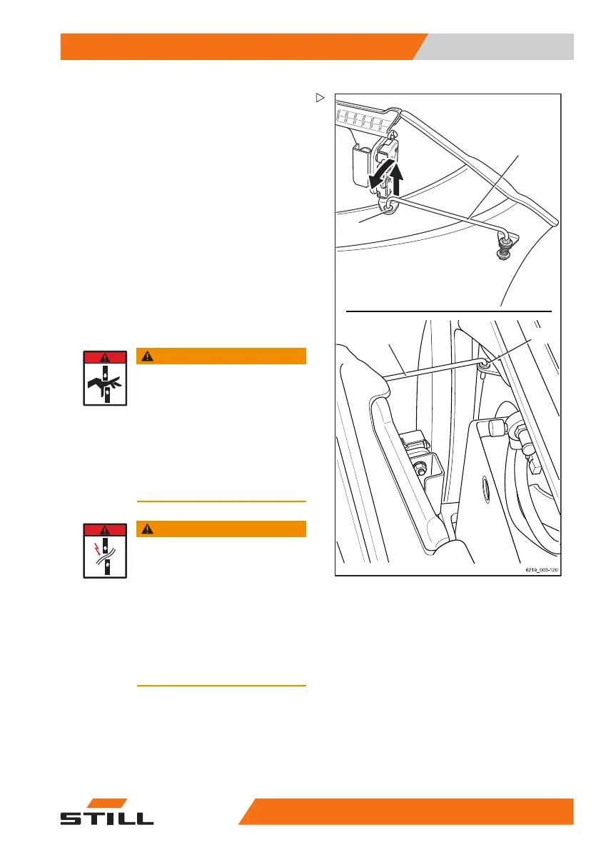 – Swing the support bracket (1) outwards in