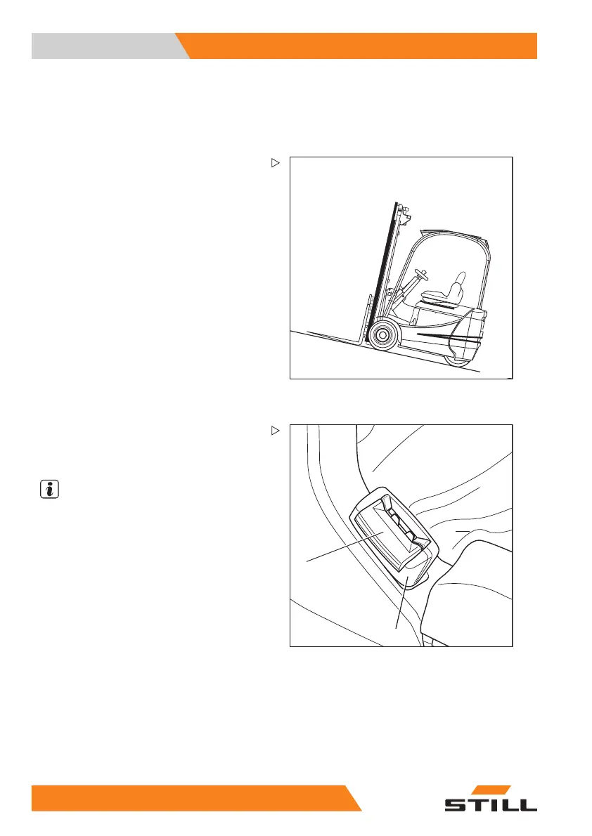 – Click the belt tongue (2) into buckle (1).