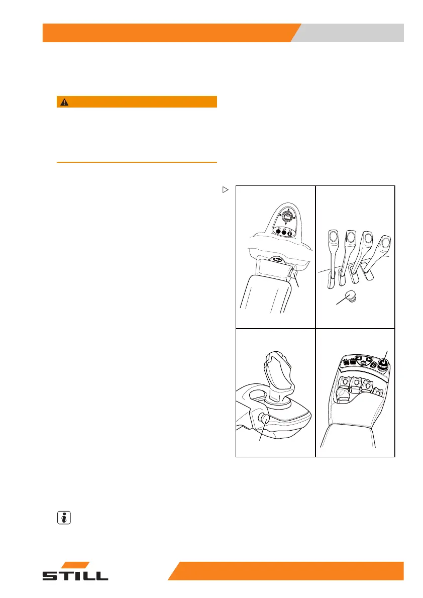 – Pull out/turn the emergency off switch (1).
