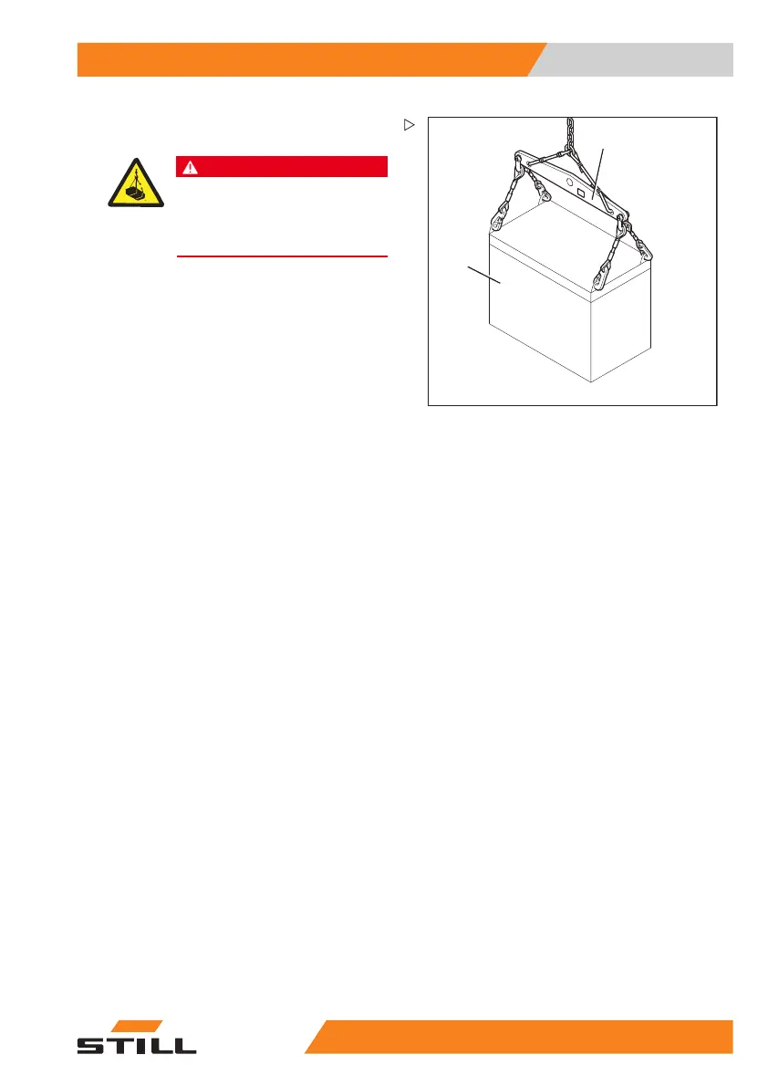 – Attach battery (1) to suitable lifting gear (2).