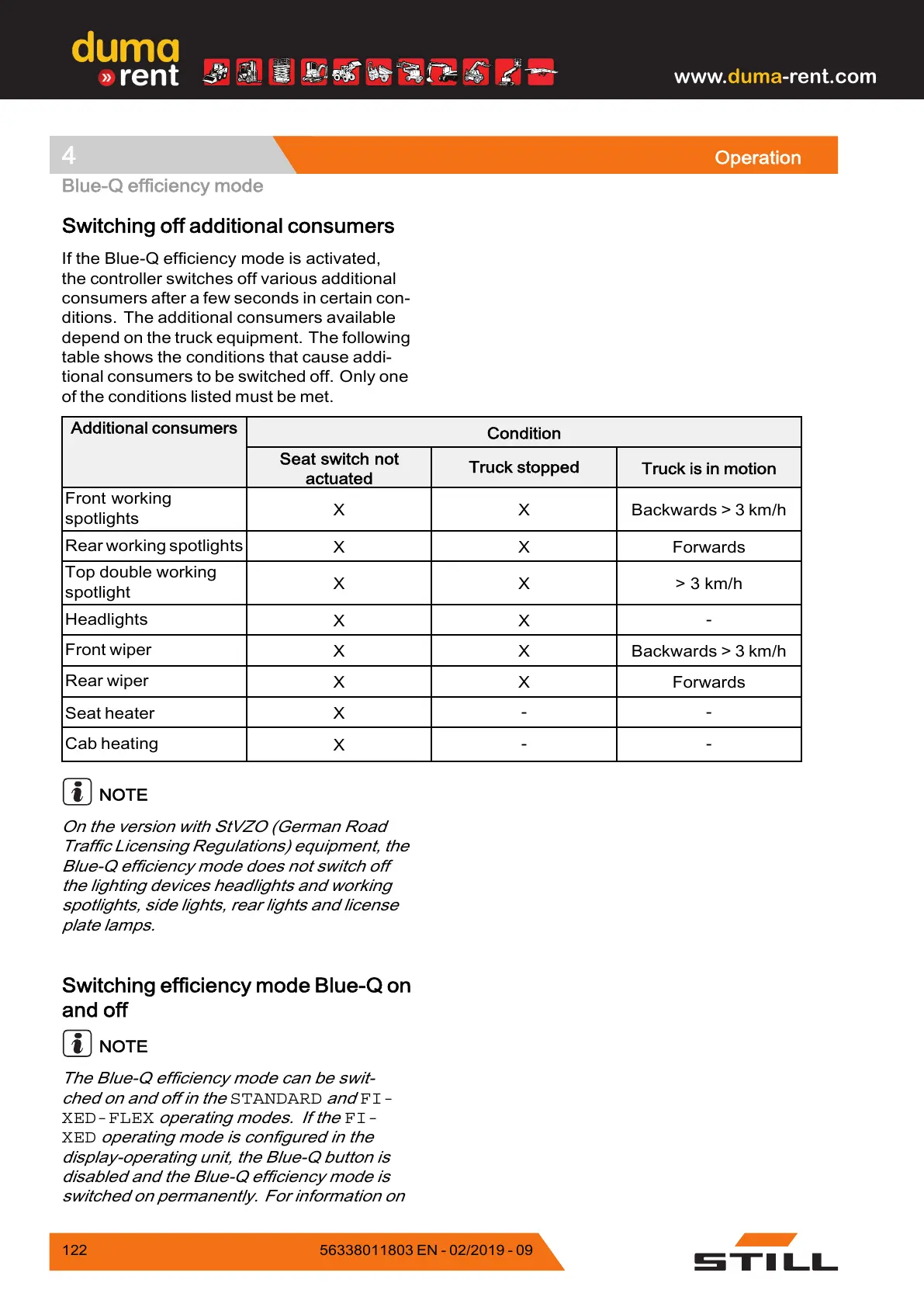 Still RX60-30 - Switching off Additional Consumers; Switching Efficiency Mode Blue-Q on and off