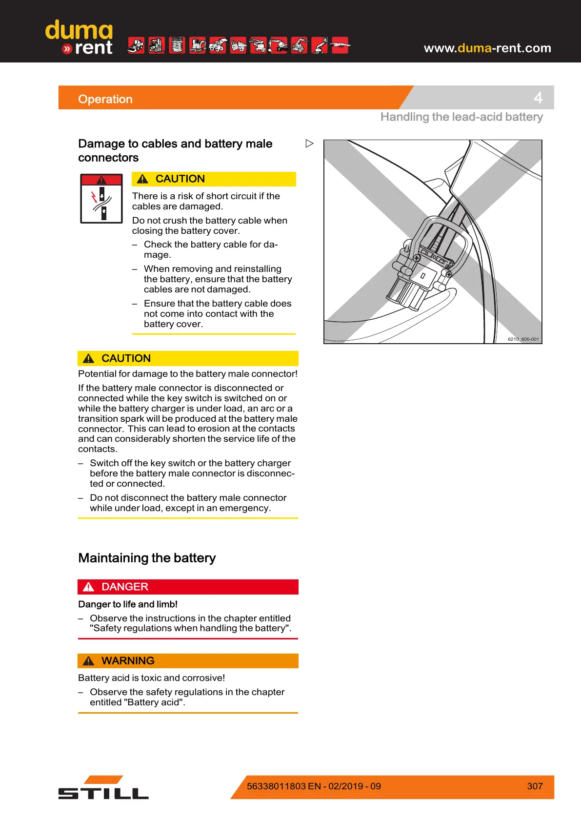 Damage to cables and battery male