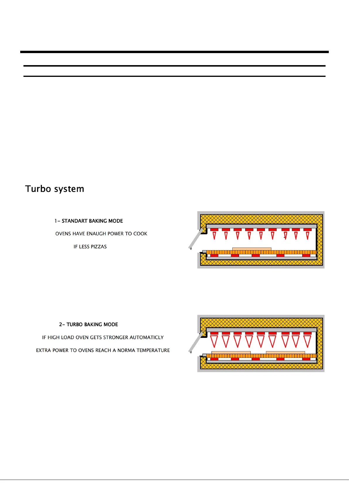 The turbo system makes the pizza bake faster and gives the oven a better heat recovery / efficiency and the