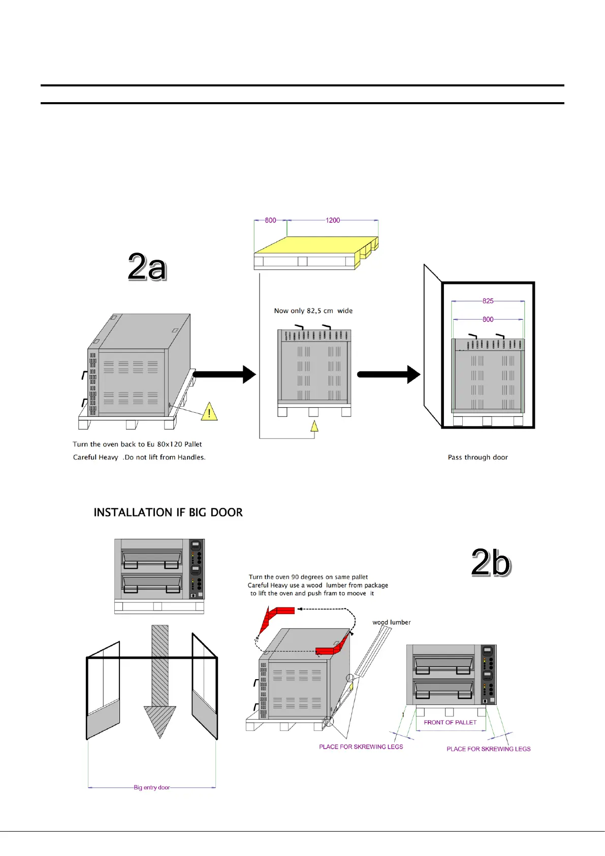 4. Use the pallet lifter and transport the oven through the door post. Depending on whether the doorway is