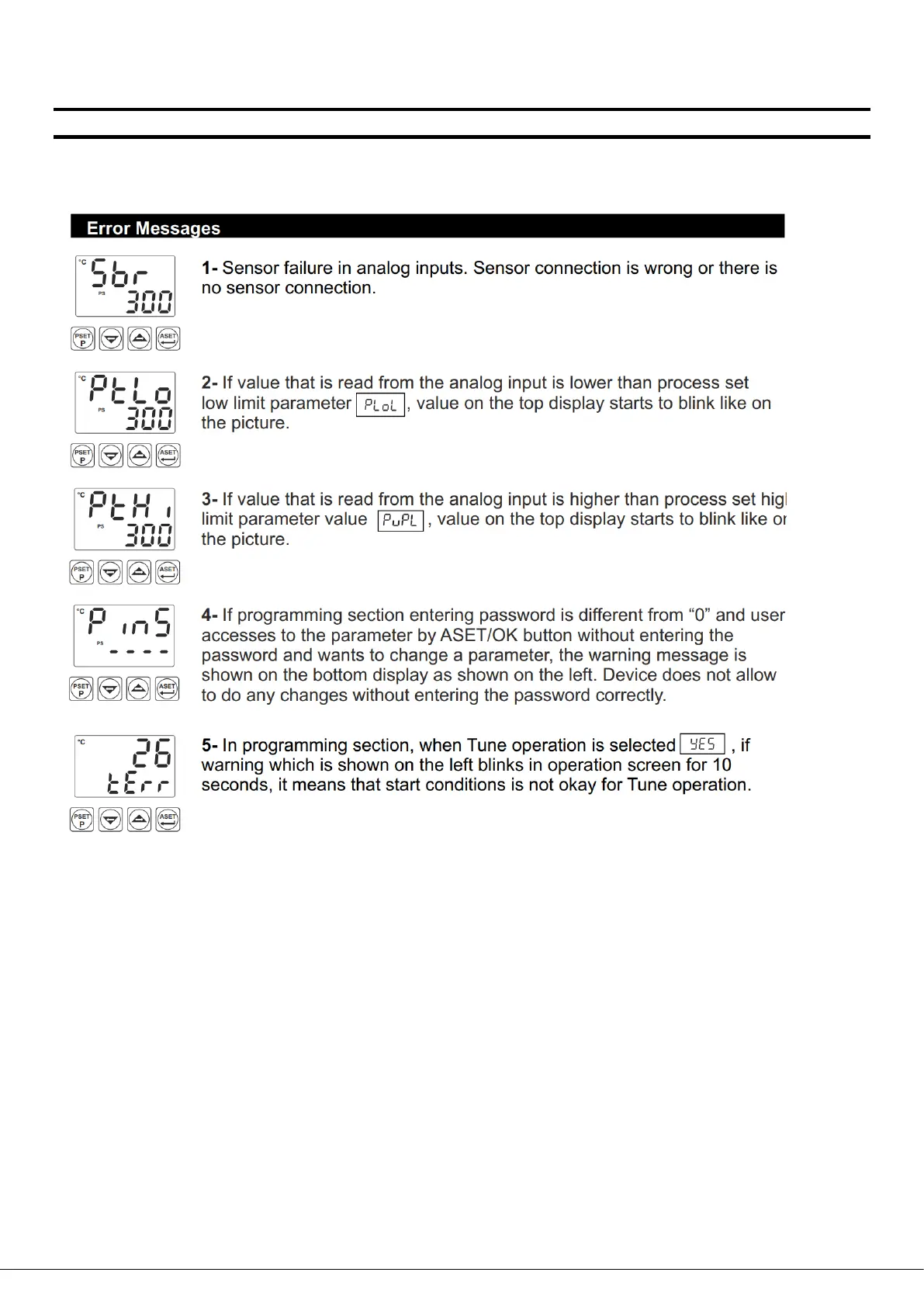 See table below for the error codes that the digital panel may generate in the event of a failure.
