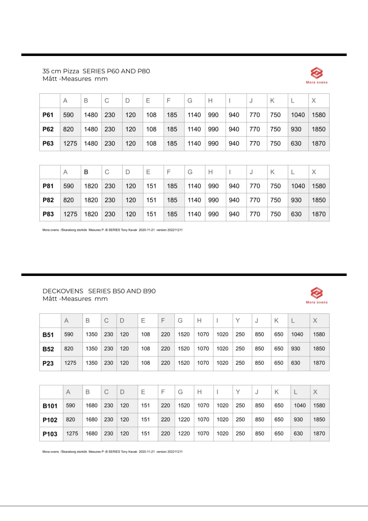 MORA OVENS | PRODUCT MANUAL | ENG - PIZZA & PASTRY DECK OVENS | VERSION 220901-1548