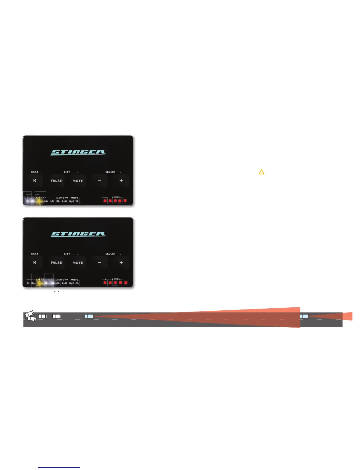 A vehicle equipped with a Stinger with Laser that has to suddenly hit the brakes, can instantly give following cars with Stinger Laser an