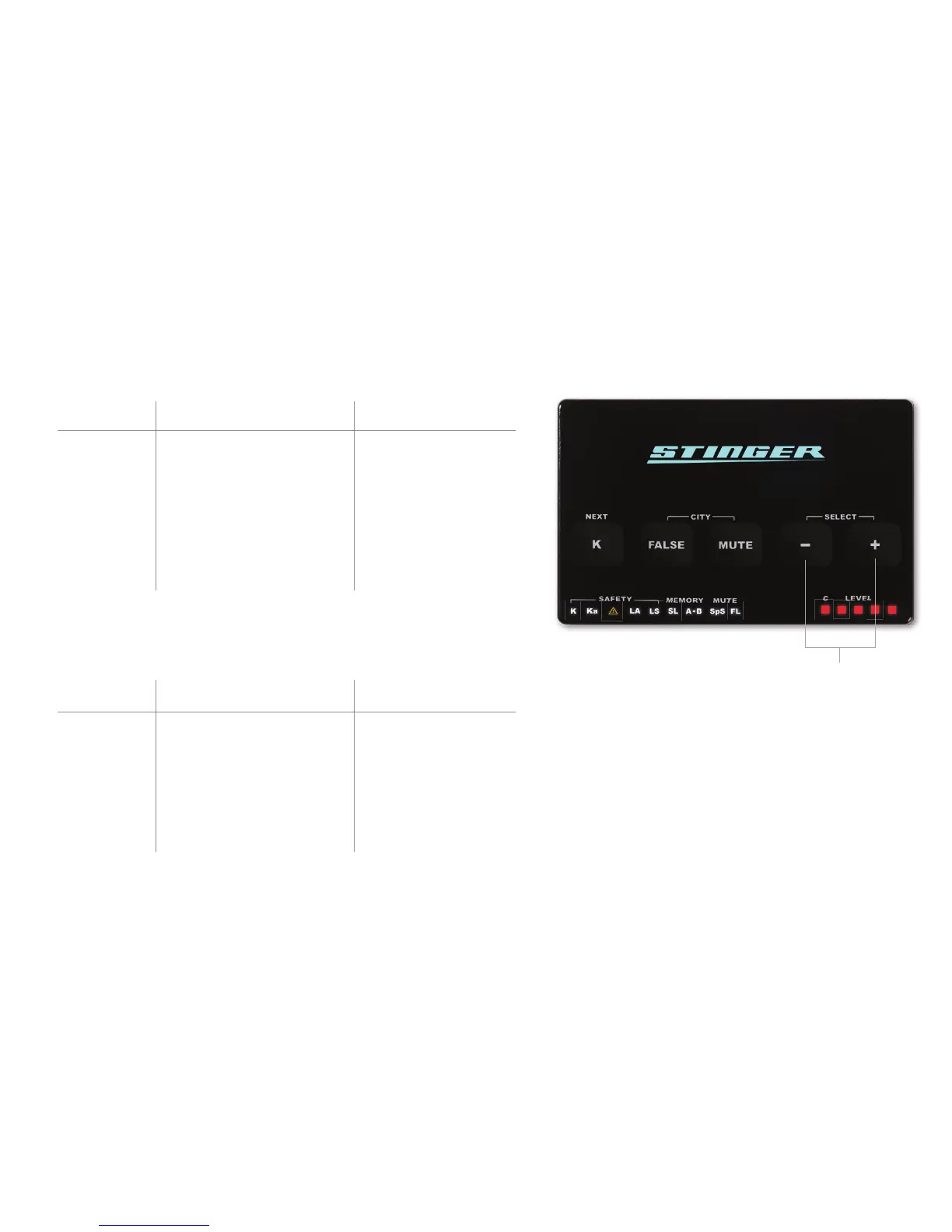• MENU LEVEL 1 (- and + hold 1 second)