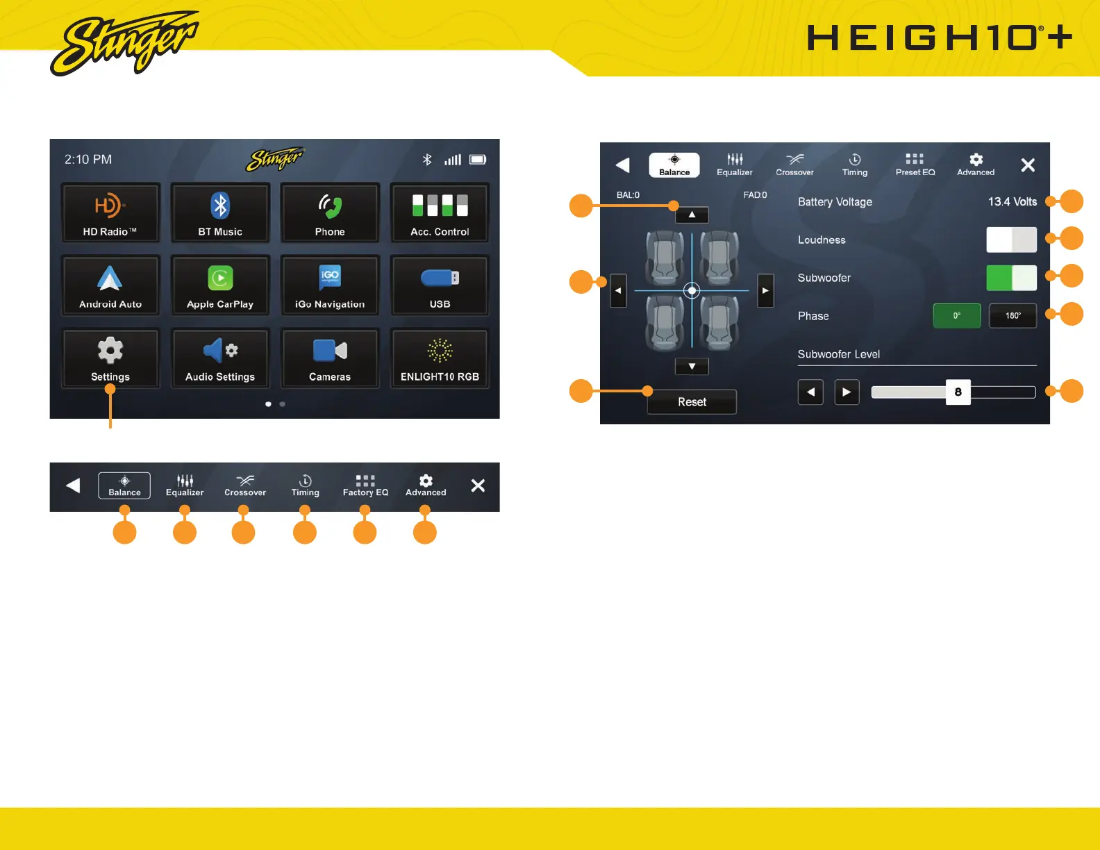 Press the HOME BUTTON > Audio Settings > Balance to select the Balance/