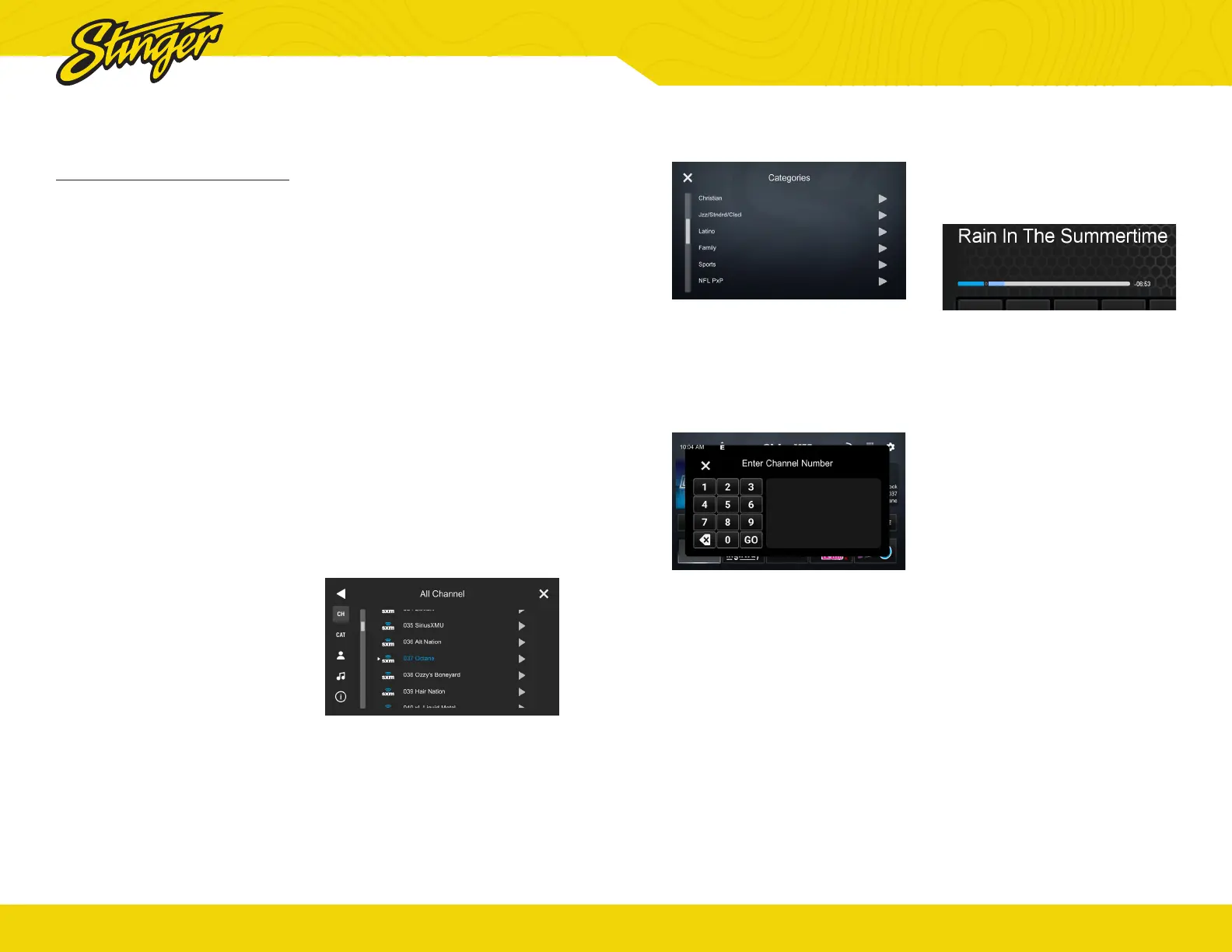 Displays a list of available SiriusXM