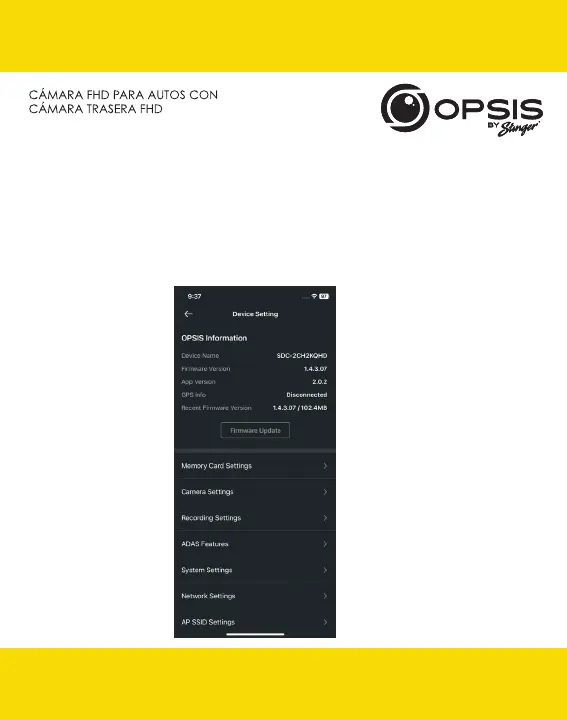 En la aplicación OPSIS by Stinger, cuando se conecta a Wi-Fi, usted