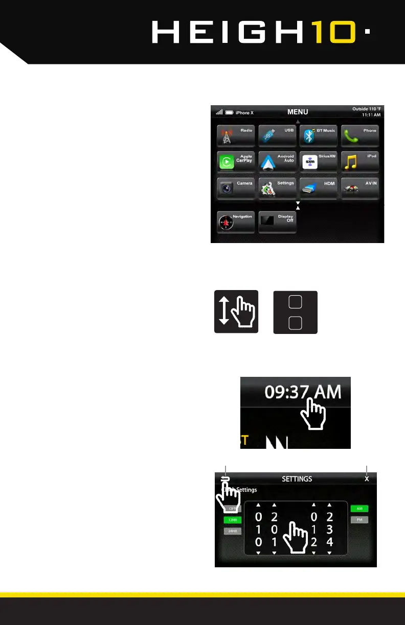 1) Touch and Hold the Time Display