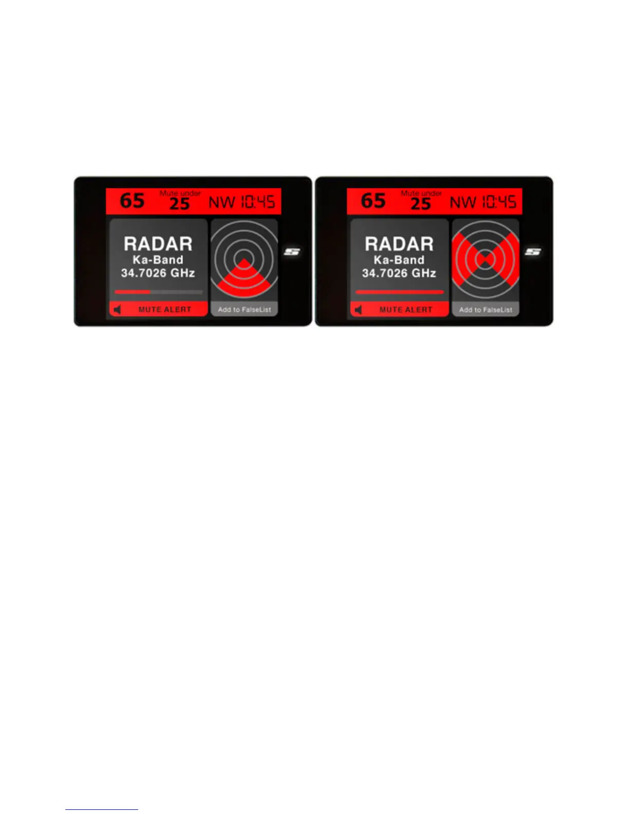 Figures 4.2 and 4.3 illustrate how the Radar Scope alerts you to a radar source behind and