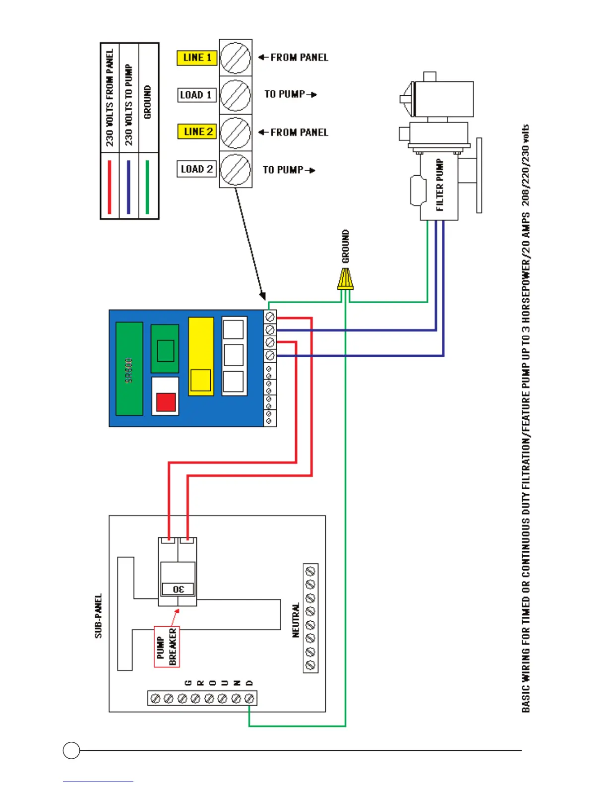 Stingl SR–500 - Basic Wiring for Timed or Continuous Duty Filtration