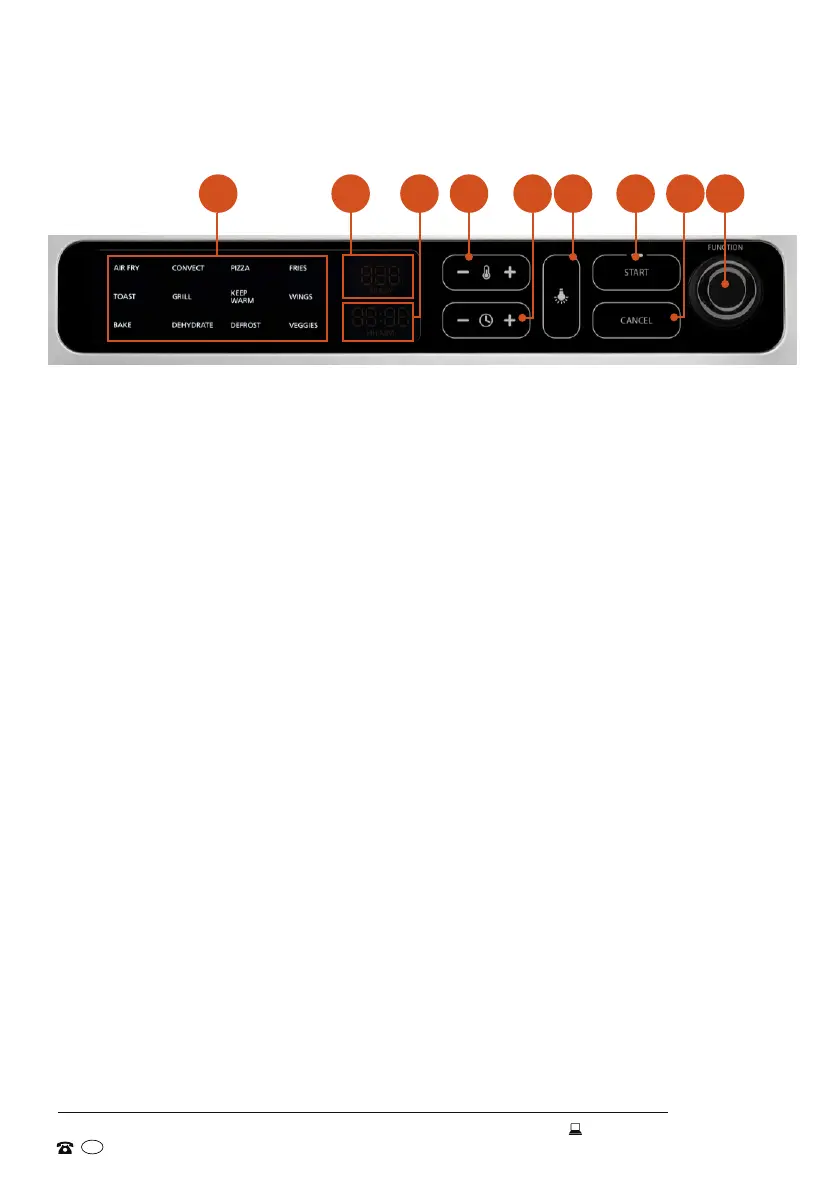 Rotate this dial to select a function: Air Fry, Convection Bake, Pizza, Fries,