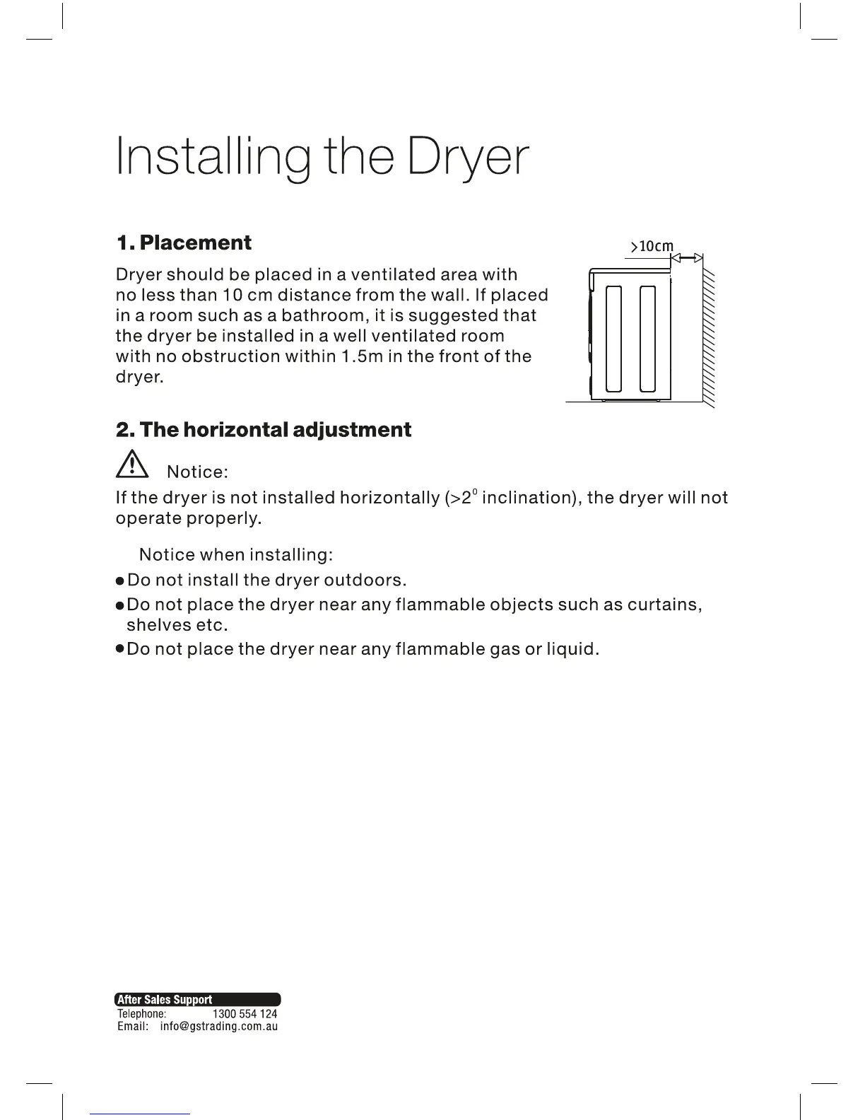 Stirling SCD6E - Installing the Dryer; Placement and Leveling