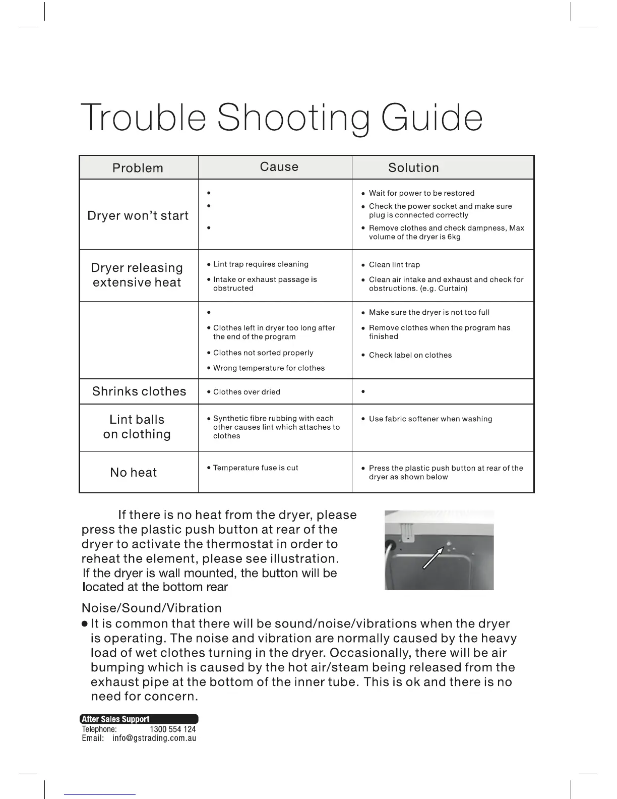 Stirling SCD6E - Trouble Shooting Guide; Common Dryer Issues and Solutions
