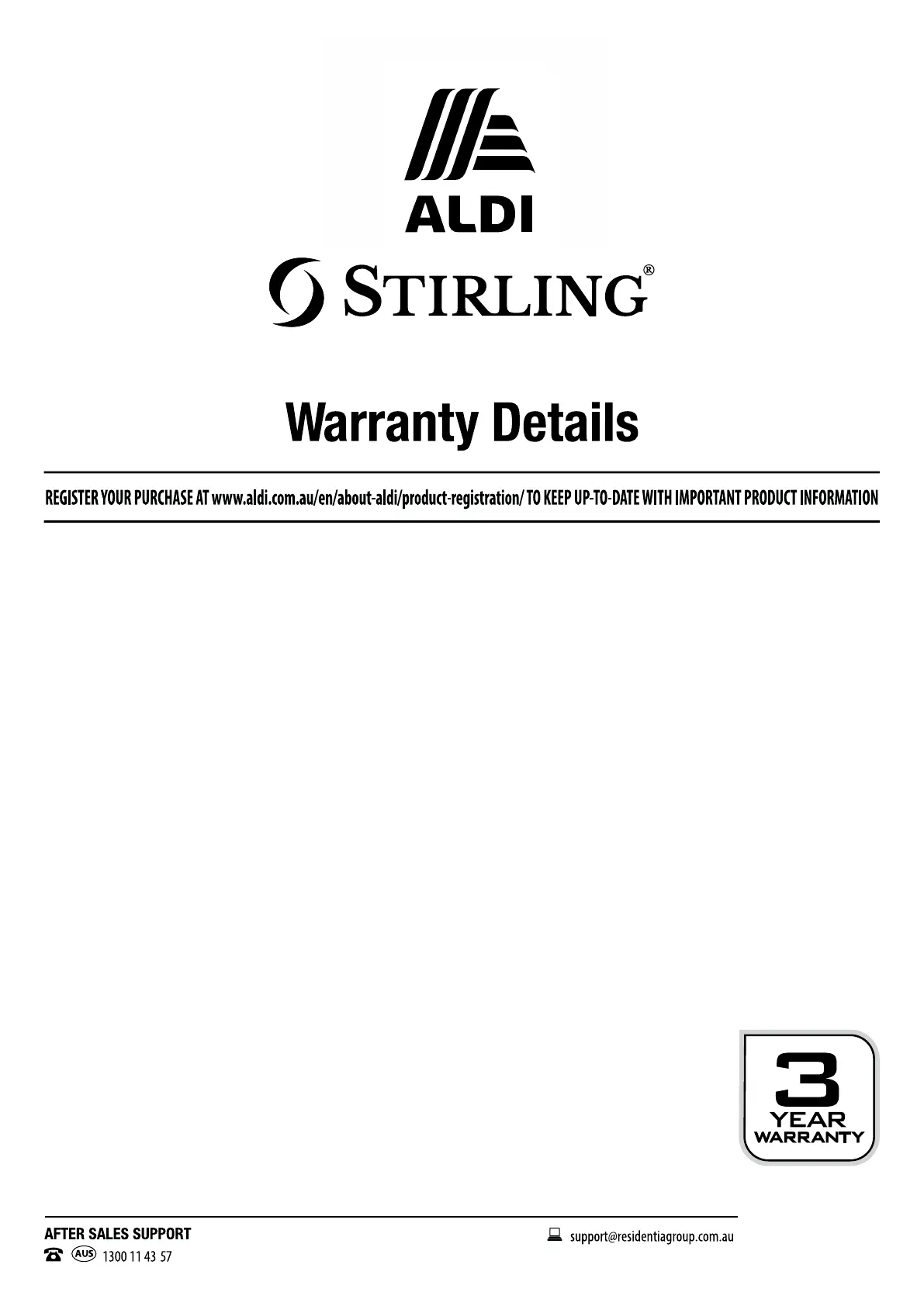 REGISTER YOUR PURCHASE AT www.aldi.com.au/en/about-aldi/product-registration/ TO KEEP UP-TO-DATE WITH IMPORTANT PRODUCT INFORMATION
