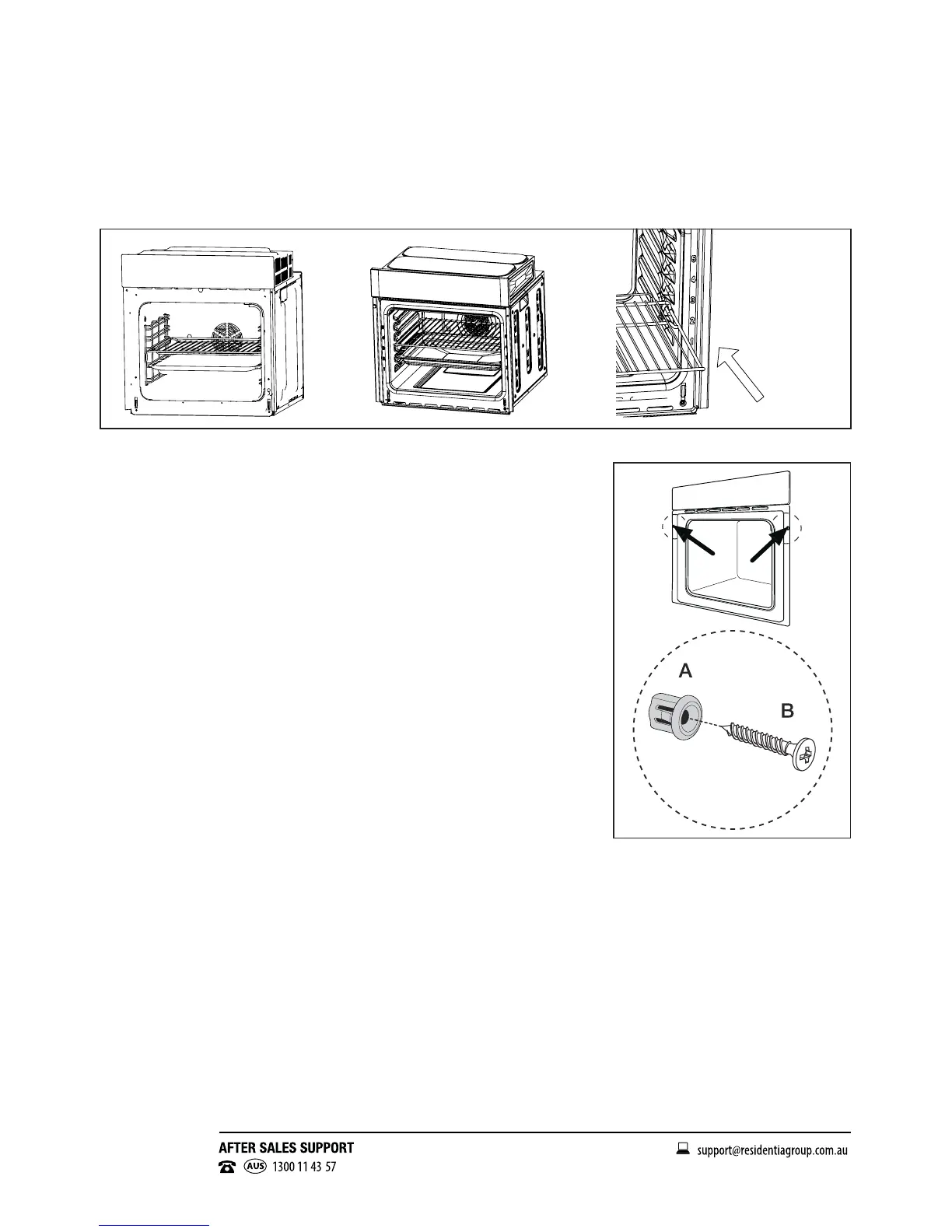 “A” which t the holes in the oven frame and t the two screws “B”.