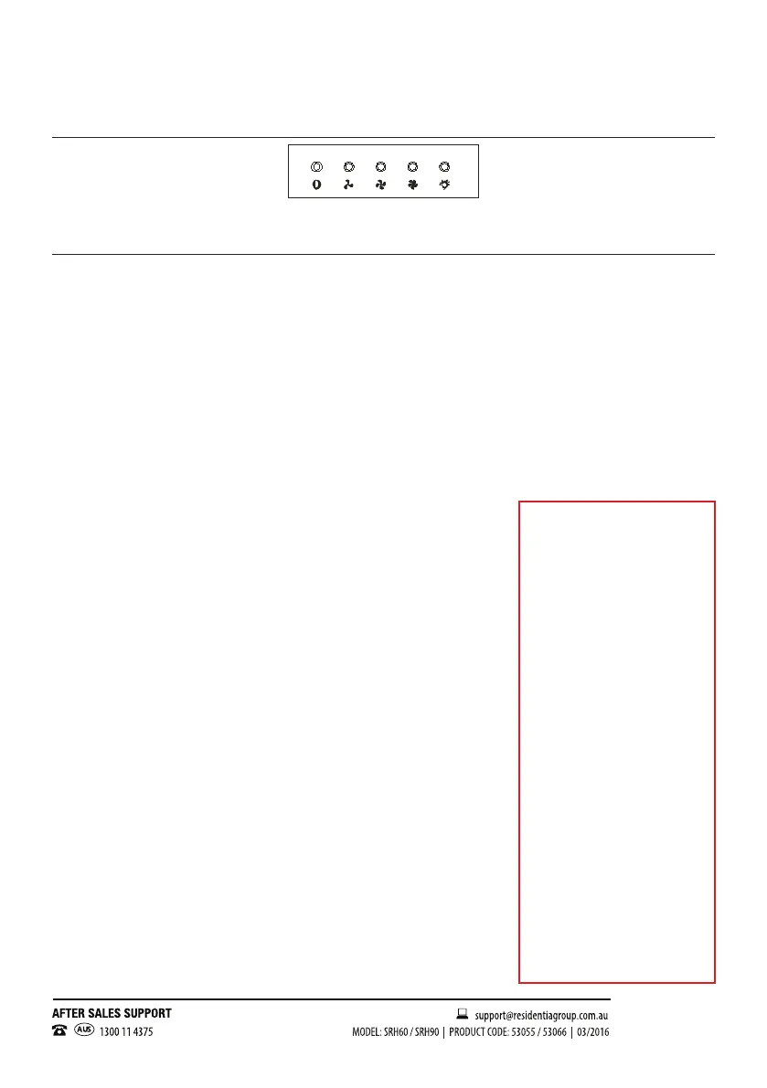 – Push the ‘High’ button, an audible buzzer will sound once, and the rangehood will operate at a high speed.