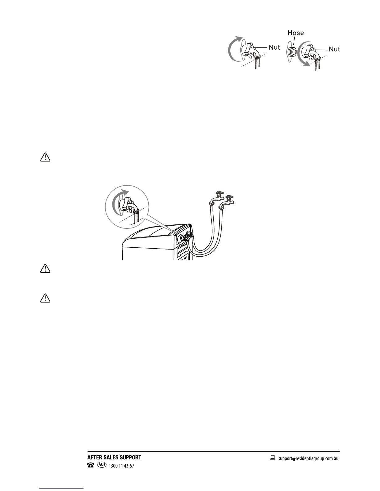 CAUTION! In the event that the hoses are too short for your set-up, please seek advice from your local