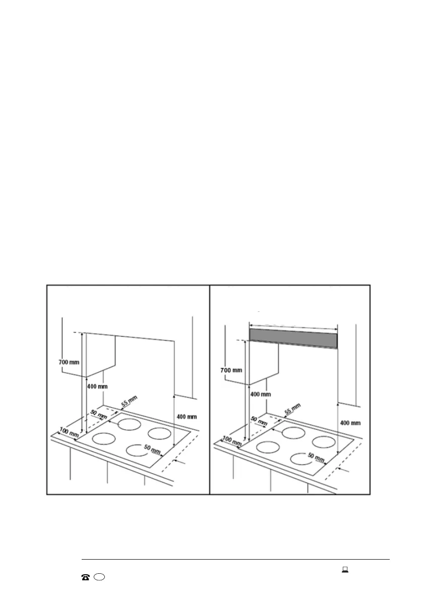 • The edges of the cooktop must be a minimum distance of 55mm from a
